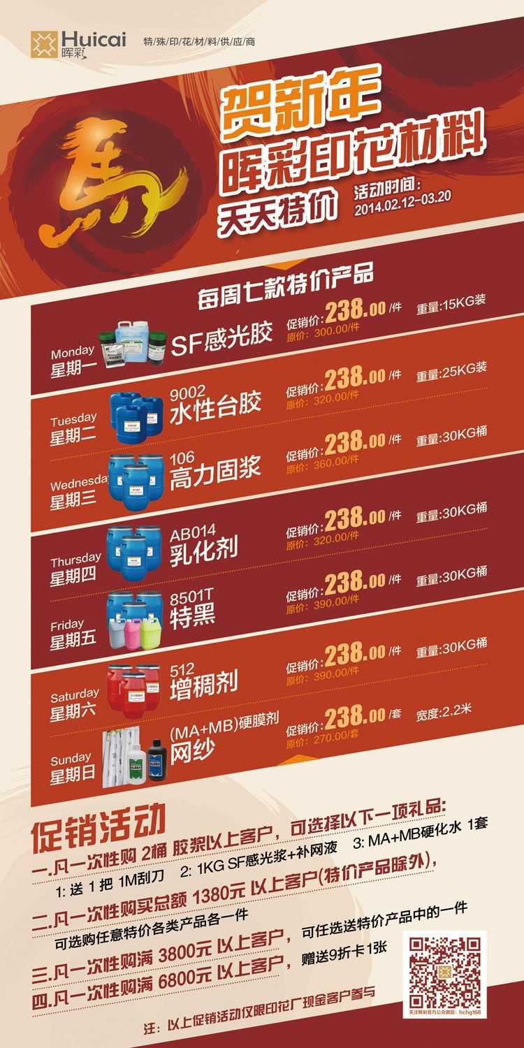 輝彩印花材料天天特價優(yōu)惠活動的